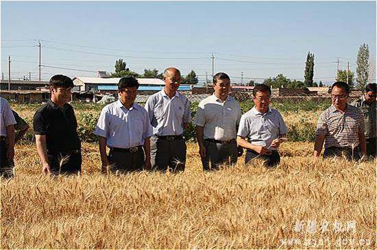 7月13日,额敏县四套班子主管农口领导和农机局领导一起,来到郊区乡三里庄村的麦田里,在这里举行小麦开镰仪式,标志着额敏县夏粮收割全面启动。