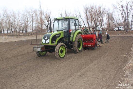 随着天气的转暖,一农场全面开展春耕小麦播种工作。一农场耕地面积6万多亩地,由于种小麦国家有补贴、经济效益有保障,农场职工种小麦的积极性也明显提高,今年预计全场种植小麦面积达到1.6万多亩。 郭光军是一农场六分场职工,他共有300亩地,今年打算把100亩地全部种小麦,为了尽早完成小麦播种、他今天早早来到地里开始播种小麦,为了确保农户春播工作有序、标准进行,农机局和场农机站技术人员到播种点跟踪技术服务。